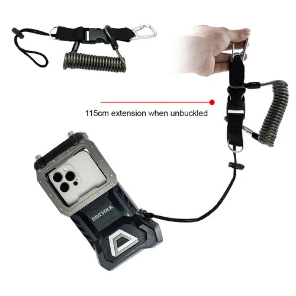 Ein unverzichtbares Zubehör zum Schutz Ihrer Unterwasserfotoausrüstung. Dieses Lanyard wurde entwickelt, um zu verhindern, dass wertvolle Ausrüstung beim Tauchen verloren geht. Dank seines elastischen Spiraldesigns bietet es sicheren Halt und Flexibilität. Bei Nichtgebrauch lässt sich das Lanyard einfach einklipsen, sodass Ihre Ausrüstung stets griffbereit ist und nicht mit der Umgebung in Berührung kommt. Das Lanyard ist bis zu 115 cm ausziehbar und bietet Ihnen somit viel Bewegungsfreiheit beim Zugriff auf Ihre Kamera oder Ihr Zubehör. Verbessern Sie Ihr Taucherlebnis, indem Sie Ihre Ausrüstung mit dem Spiral-Tauchausrüstungs-Lanyard sicher und griffbereit aufbewahren. Es eignet sich perfekt für Hobby- und Profitaucher und ist eine praktische Ergänzung Ihrer Unterwasserausrüstung für sorgenfreies Tauchen.