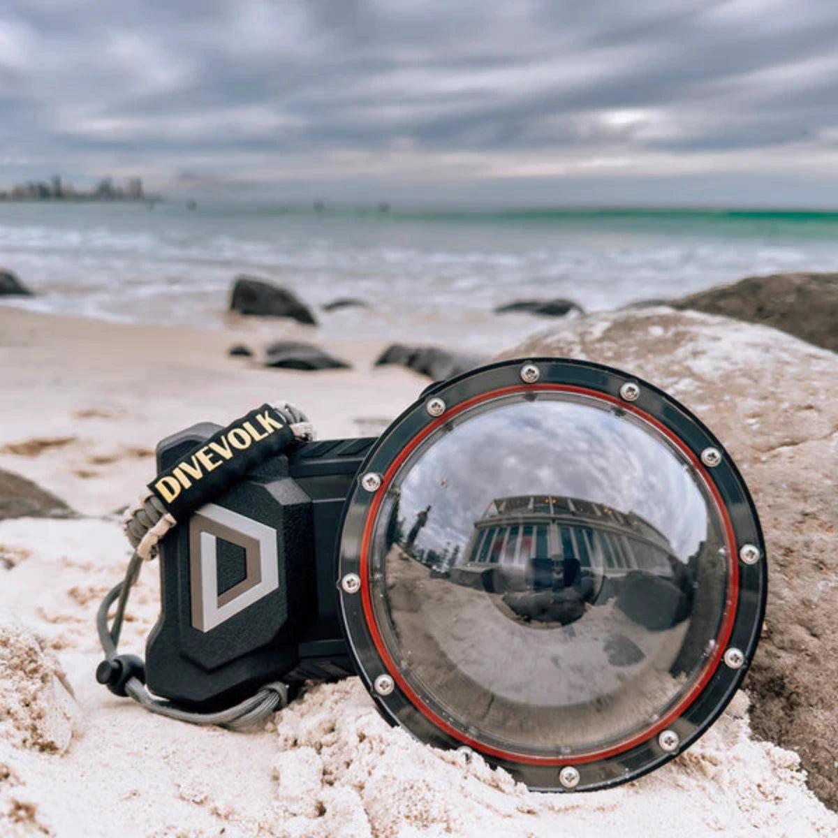 - Kuppellinse für Split-Shot-Aufnahmen an der Wasseroberfläche und zur Erweiterung des Unterwasser-Sichtfelds auf über 3 Meter.