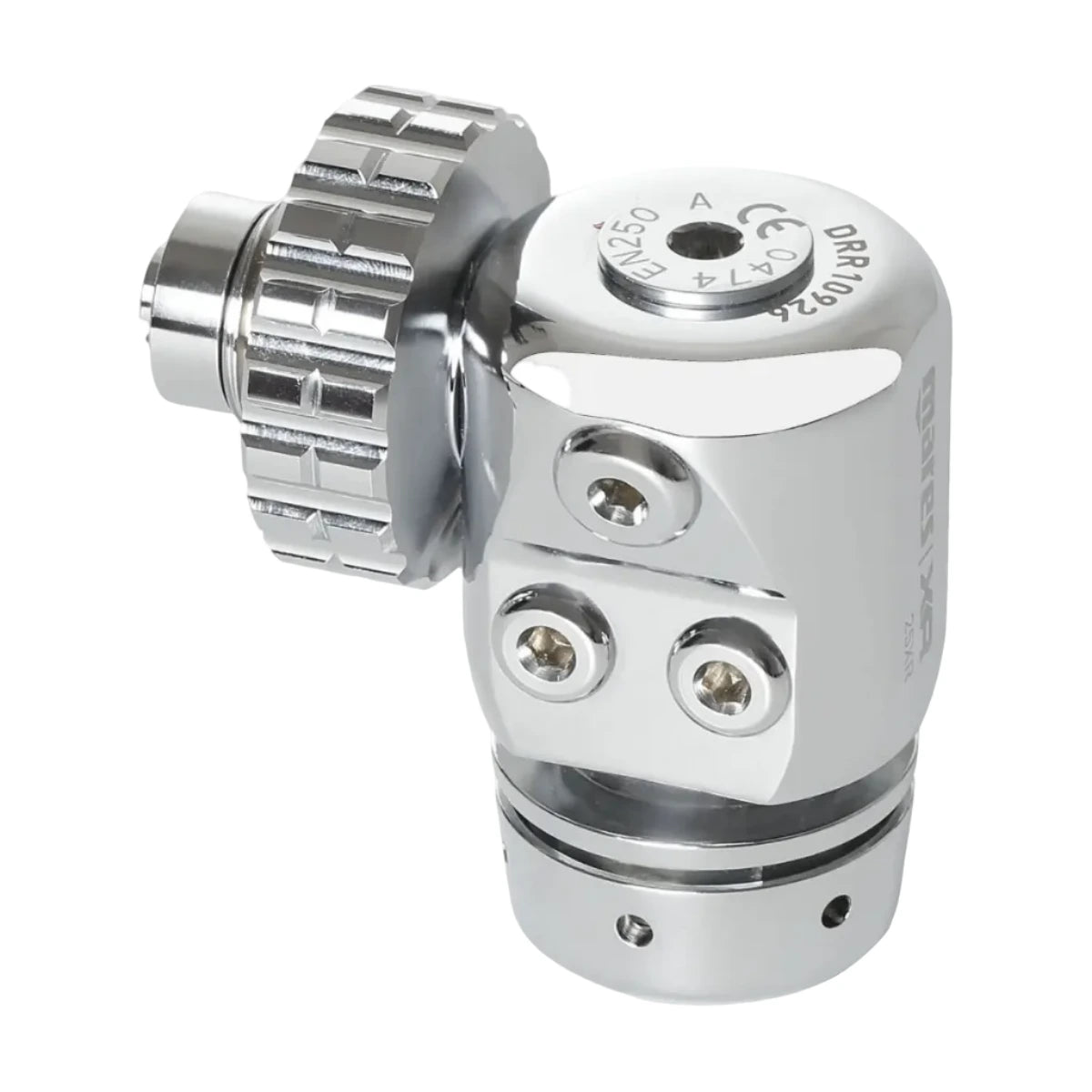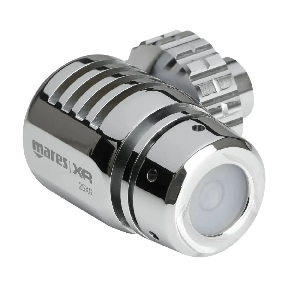 Die 25XR-Erste Stufe ist speziell für Taucher mit Doppelflaschen oder zur Montage auf anderen Stufen konzipiert. Die Niederdruck- und Hochdruckanschlüsse befinden sich auf einer Seite und sind voreingestellt. Das Set enthält zwei 25XR-Erste Stufen, eine für die rechte und eine für die linke Seite. Die Schlauchanschlüsse sind so positioniert, dass sie bei der Montage nach unten zeigen, wodurch sich die Stufe ideal für Tauchgänge in Höhlen oder engen Räumen eignet.