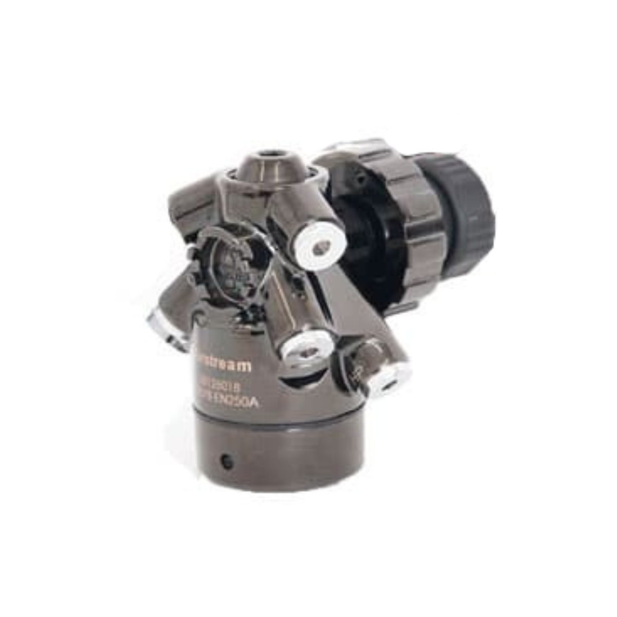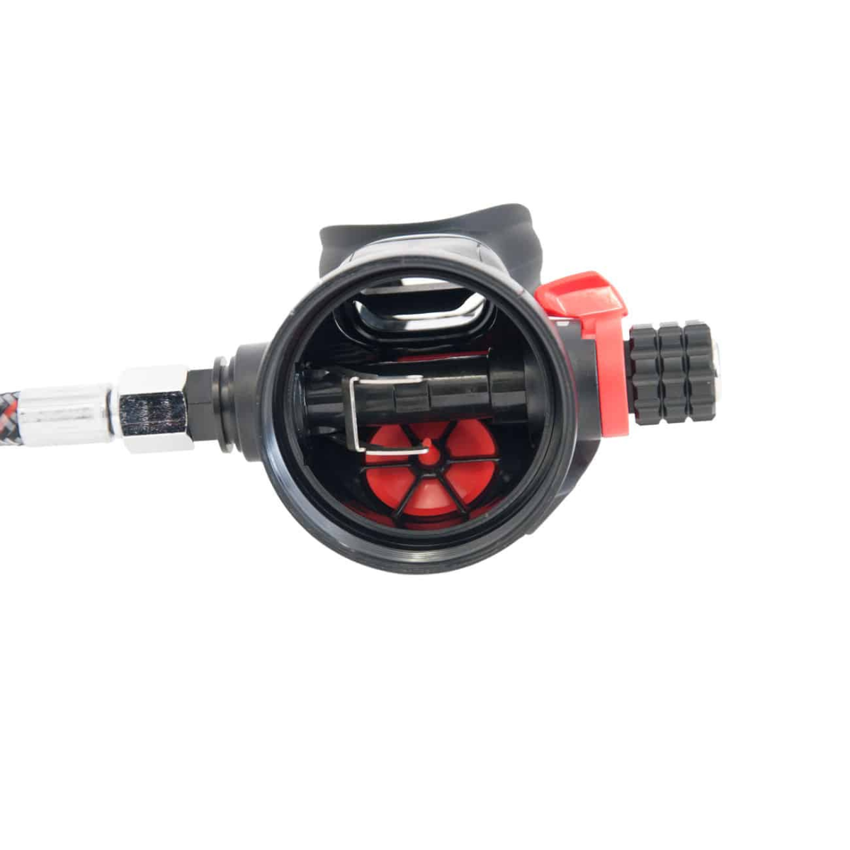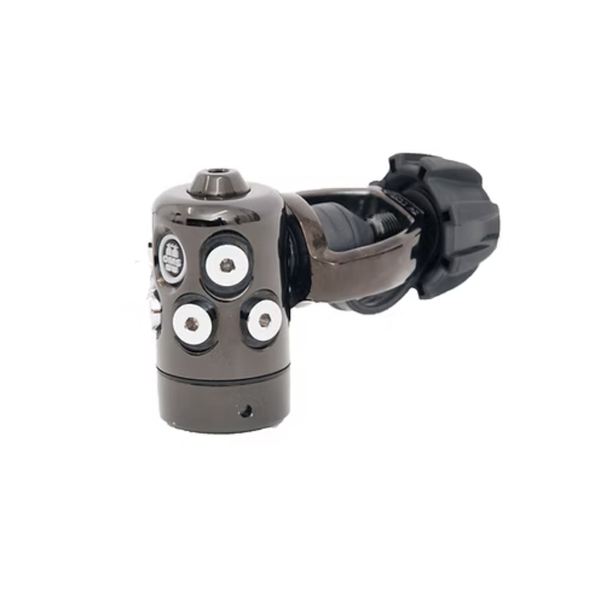 Die Airstream C erste Stufe mit PVD- Beschichtung und die Evoque Lite zweite Stufe. Der leistungsstarke OMS AirStream Atemregler ist jetzt in einer neuen, kompakten Version erhältlich. Die erste Stufe ist CNC-gefräst und PVD-beschichtet (Physical Vapor Deposition). Dieses Verfahren sorgt für maximale Haltbarkeit, hervorragende Korrosionsbeständigkeit und Verschleißfestigkeit.