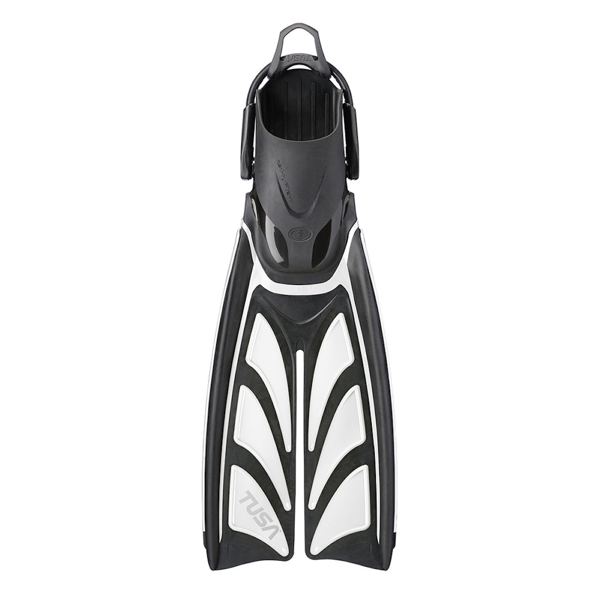 Die TUSA HyFlex Zoom (SF0111) ist eine innovative Tauchflosse, die für maximale Effizienz bei minimalem Widerstand entwickelt wurde und sich daher ideal für Taucher eignet, die Wert auf Leistung, Komfort und Anpassungsfähigkeit legen. Das geteilte Flossendesign mit 6 Lamellen (Kanälen) ermöglicht den Wasserdurchfluss durch das Flossenblatt, wodurch Turbulenzen dahinter deutlich reduziert und unnötiger Widerstand beim Flossenschlag vermieden wird.