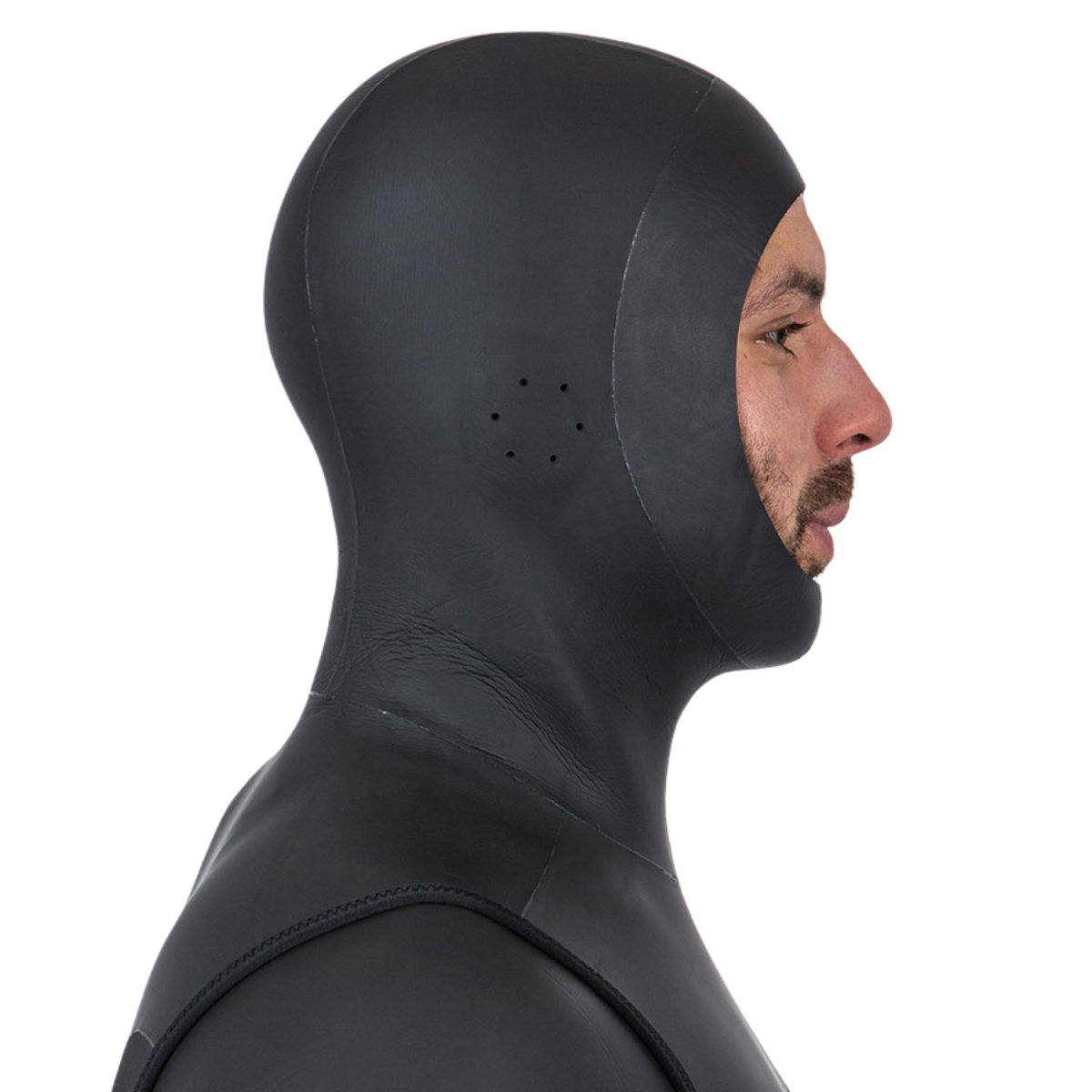 Die Weste ist mit Ohrbelüftungen für einen schnellen und effizienten Druckausgleich ausgestattet. Diese lassen eine geringe Luftmenge einströmen und verhindern so, dass die Kapuze bei steigendem Druck auf das Ohr drückt. Das Design umfasst mehrere Belüftungsöffnungen für verschiedene Ohrpositionen.