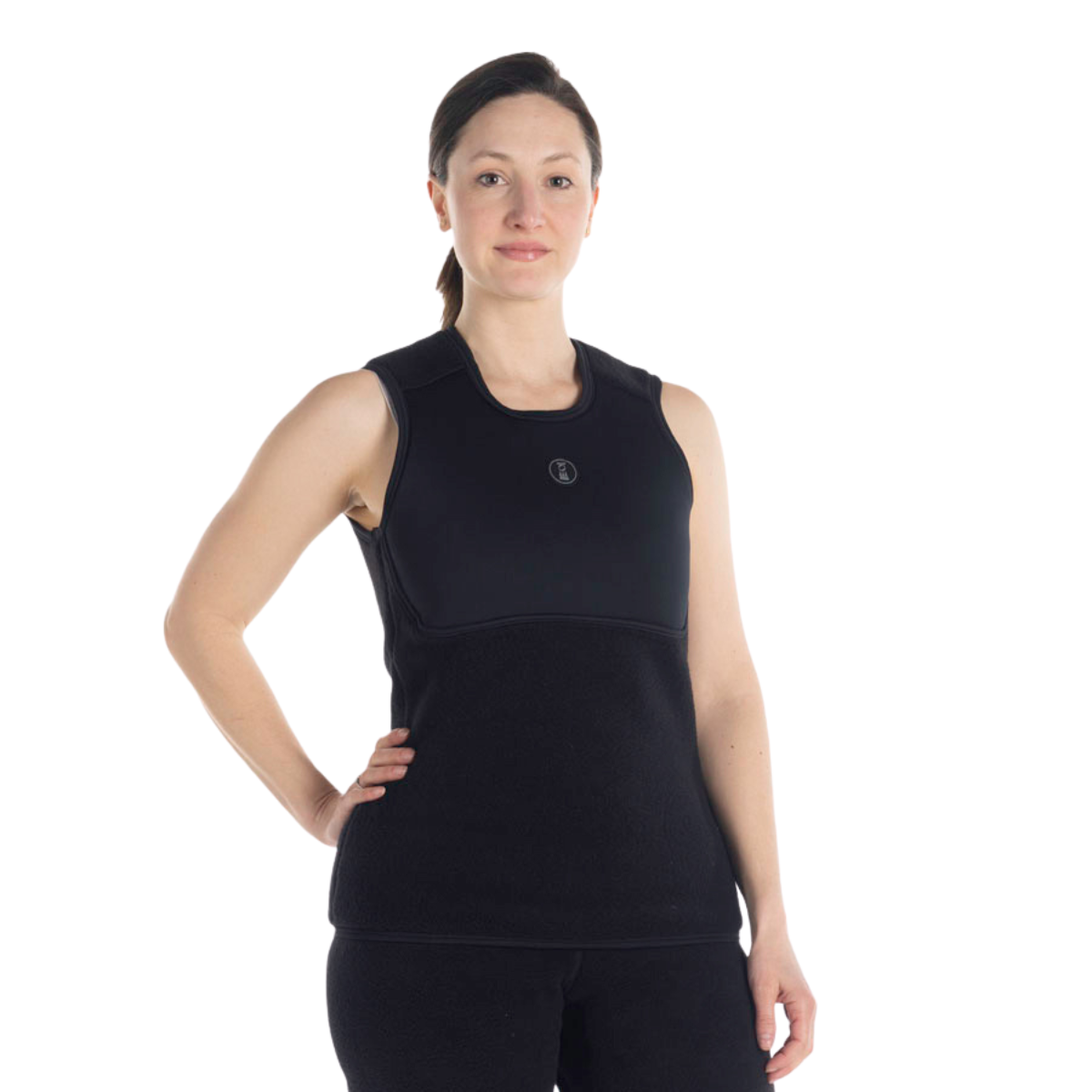 Das ärmellose Design der Weste minimiert den Einfluss auf den Auftrieb und das Gesamtvolumen, insbesondere im Schulter- und Armbereich, wo Bewegungsfreiheit unerlässlich ist. Das Vier-Wege-Stretchmaterial sorgt in Kombination mit dem verlängerten Schnitt für eine optimale Passform und verhindert Kältebrücken. Das zusätzliche Brustpanel minimiert das Eindringen kalter Luft durch das Einlassventil und bietet zusätzlichen Wärmeschutz in einem besonders exponierten Bereich. Das schnelltrocknende Material leitet Schweiß nach außen ab und hält den Träger trockener und wärmer.