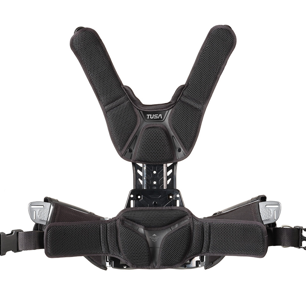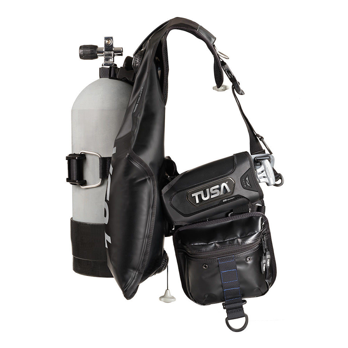 The TUSA BB React BC0203B is a back float buoyancy compensator designed to provide excellent stability, increased comfort and superior position control in the water. The model integrates a completely redesigned harness system (REACT System) , a new air chamber shape and an improved cylinder attachment system , eliminating lateral cylinder movement and increasing comfort during the dive.