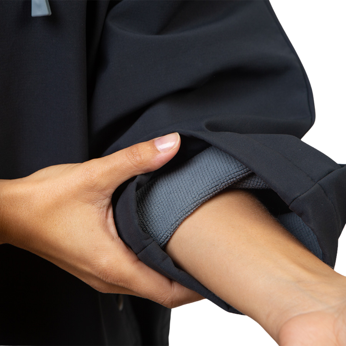 The Storm Poncho is made from materials produced according to the Bluesign® standard, using innovative, energy-efficient and environmentally friendly techniques. The fleece lining contains 37% S.Café® recycled fiber , made from recycled plastic bottles. S.Café® technology integrates coffee grounds into the fibers, ensuring faster drying, increased odor resistance and improved UV protection.